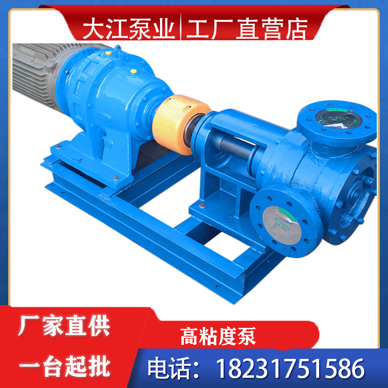高粘度泵为内齿轮旋转泵适合泵送粘度的液体.不能泵送含固体颗粒的液体 . 但可泵送含磨研性颗粒的液体 .